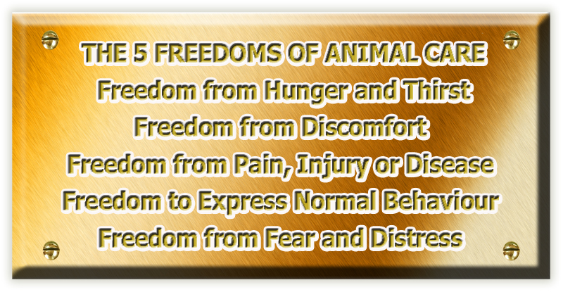 Nos dedicamos tanto a un conjunto de pautas internacionales para el bienestar animal conocidas como "Las cinco libertades del cuidado de los animales" como a los principios en los que nos fundamos: que siempre estaremos comprometidos, preocupados, eficaces y compasivos.